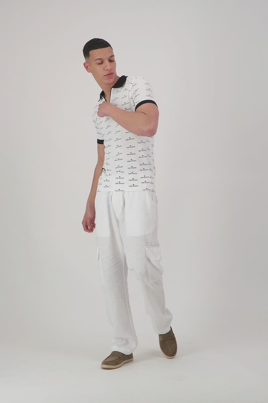 The Cypress Polo Shirt - White delivers a refined and stylish look with its distinctive all-over Tom Voyager logo pattern. Made from premium cotton, it offers exceptional comfort and breathability. Key details include a classic polo collar with contrasting black trim, ribbed cuffs and hem, and a traditional 3-button placket. This polo is an essential addition for those seeking to enhance their casual wardrobe with a sophisticated logomania design.