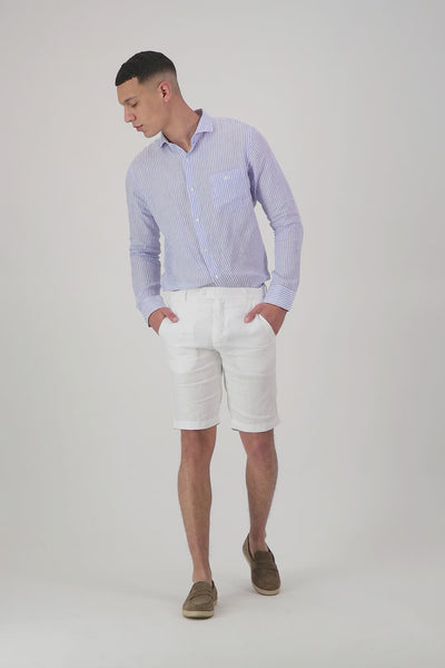 Drawing inspiration from the relaxed atmosphere of Porto’s seaside avenues, this men's Porto striped linen shirt offered in soft beige or fresh blue, embodies understated elegance. Crafted from breathable linen that naturally wicks moisture, it ensures lasting comfort in warm conditions. Ideal for urban adventures or tranquil moments, the Porto Striped Blue Shirt seamlessly combines ease and sophistication to accompany you through every part of your day with refined comfort.